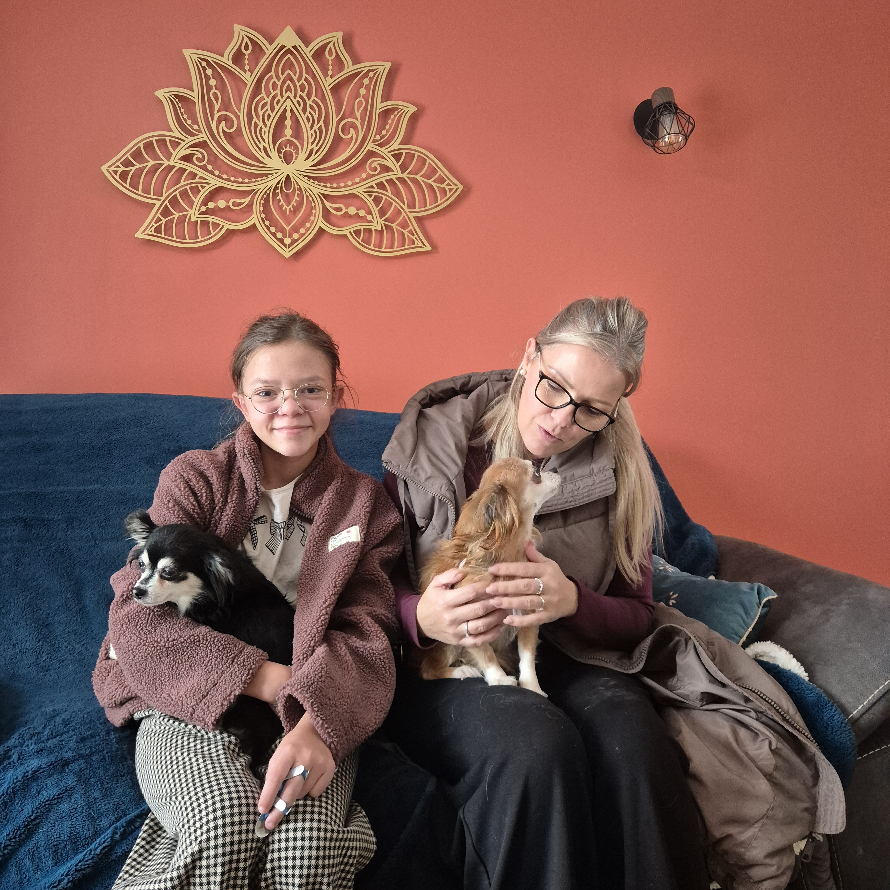 Voici les photos de la future adoptante avec sa plus jeune fille venue rencontrer Mandy et Cachou. Nous avons passé 1h30 ensemble et tout le monde était ravi. Elles ont fait 4h de route AR pour venir passer un moment avec elles et le coup de coeur réciproque a été au rdv pour le plus grand plaisir de tous. -