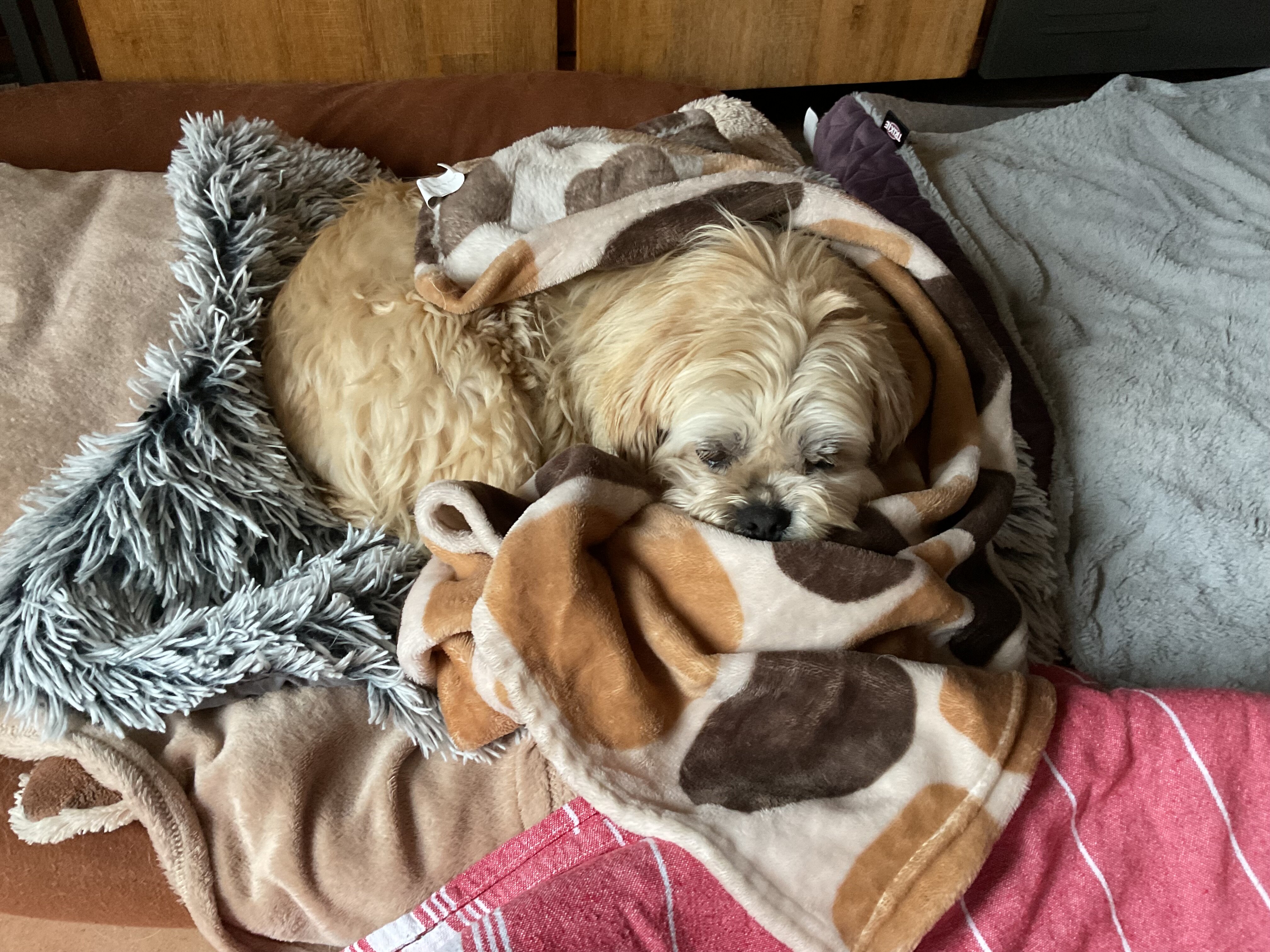 Une bonne nouvelle Jayron s'est levé ce matin bien plus frais que les jours précédents et plus présent aussi dans sa tête. Il s'est levé de son dodo et est venu à moi dès qu'il m'a vu et m'a fait à nouveau un câlin en remuant la queue, est allé directement faire ses besoins dans le petit jardin puis a bien mangé la gamelle que je lui avais préparé pendant qu'il faisait son petit tour (toujours à petits pas pour le moment). Comme il a mal aux dents du fond je vais faire une transition et passer à des boites énergétiques plutôt que les croquettes jusqu'à ce qu'il puisse être en état d'être détartré. Après un second petit tour au jardin après avoir mangé il est reparti de lui même se coucher dans son dodo. Je l'ai trouvé plus alerte, plus connecté dans le regard par rapport aux deux derniers jours et ça m'a fait très plaisir car je m'inquiétais un peu pour lui qui semblait décompenser en se laissant glisser vers le bas, tellement épuisé par sa descente en enfer. Tous les espoirs sont donc permis car il semble commencer la remonter tel le Pheonix.- 64 réponses