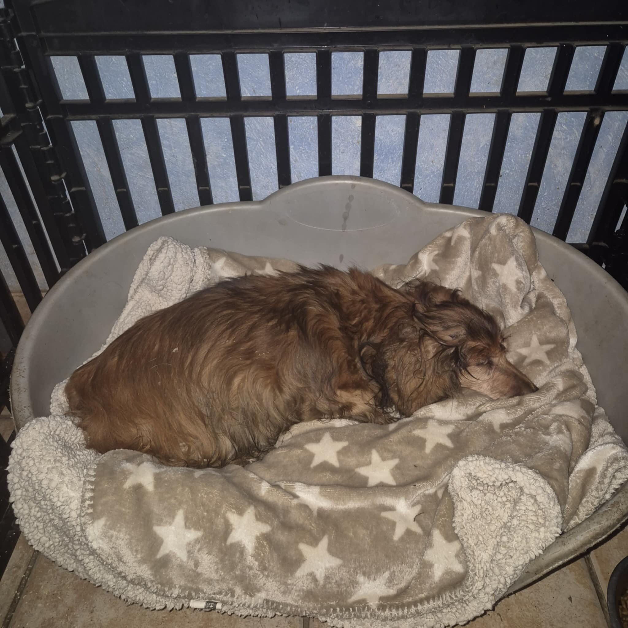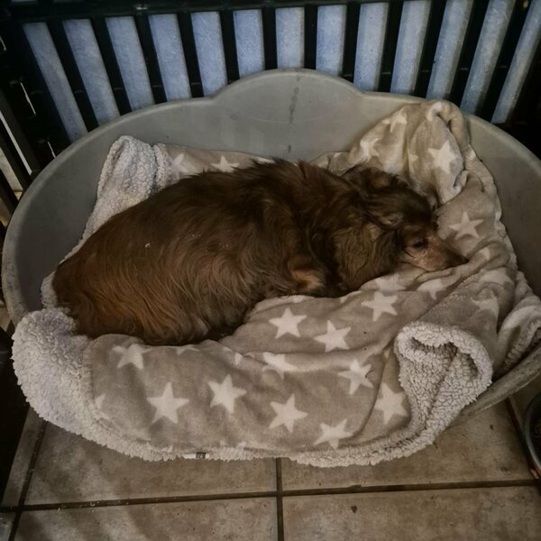 22. C'est difficile de comprendre comment laisser des petits chiens dehors pendant 2 ans, tu vas être au chaud maintenant petit Jilou.