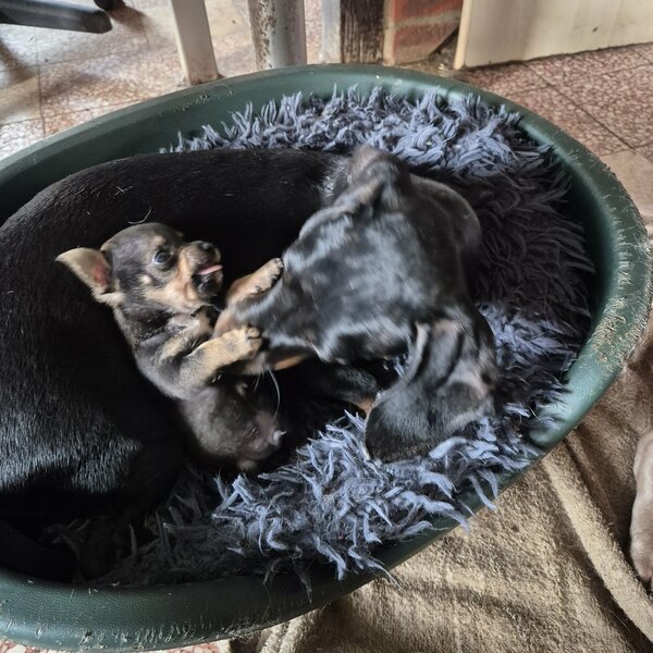 Ousmane n'est pas du tout un chien terrible, juste un petit chien qui comme tous les pinschers a du caractère et qui a tout comme Loubna a certainement eu très faim et s'est débrouiller pour manger. Il est très câlin et très gentil. ok chiens et chats. Lui et Loubna semblent se détacher, ils sont devenus deux électrons libres à présent, et si Loubna aime être avec les grands en journée , Ousmane préfère rester chez les petits. Loubna n'a plus de lait ou si peu que ça ne nourrit plus Marius. Je biberonne donc 4 fois par jour le bébé. N'ayant plus de lait Loubna se contente depuis quelques jours de passer en courant voir si son chiot est toujours là mais repart aussi vite sans lui accorder le moindre temps. Céleste ma petite chihuahua s'en occupe bien plus et est bien plus maternelle avec lui que Loubna. J'ai donc Marius H24 avec moi depuis plusieurs jours afin qu'il ne soit pas seul et soit dorloté et surveillé afin de pouvoir répondre à ses besoins à chaque fois qu'il en a besoin. En journée il est soit lové contre ma peau sous mon pull, soit dans un petit vari kennel avec une bouillotte quand je dois me déplacer, soit dans un panier douillet pour que les cani-senioriens puisse venir le cotoyer et faire plus ample connaissance sous ma surveillance. La nuit c'est pareil, comme Loubna n'a de cesse de laisser son petit tout seul dans le panier à côté de mon lit, au début je le prenais uniquement la deuxième partie de la nuit contre moi pour qu'il ait bien chaud (afin de pouvoir dormir un petit peu) mais depuis que Loubna déserte systématiquement son dodo, il dort toutes les nuits contre moi et comme j'ai un sommeil très léger, dès qu'il fait mine de bouger , je le dépose sur une petite serviette posée sur le sol à côté de mon lit et il fait immédiatement son petit pipi , puis je le reprend et il se rendort dans le creux de mon bras ou dans mon cou en toutouillant mes cheveux. Je suis donc devenue officiellement pour lui sa nouvelle maman et dès qu'il m'aperçoit ça le met tout en joie et ça m'émeut de le voir ainsi le regard brillant se précipiter vers moi avec ses toutes petites pattes. Quand j'y pense lui aussi il a bien mal commencé son existence. Seul survivant de la portée, avec une maman immature et dénutrie pleine de bonne volonté mais hélas restant très peu maternelle, né avec un souffle au coeur et ayant des vers. Il a manqué y passer lorsque la vétérinaire a voulu qu'on le vermifuge afin qu'il puisse prendre du poids correctement car il ressemblait à son arrivée à un haricot vert (ou un éclair comme disait Maël), mais c'est un warrior et j'ai le plaisir de vous annoncé qu'il fait 493 gr ce soir (il en faisait 350 il y a une semaine) !- 66 réponses
