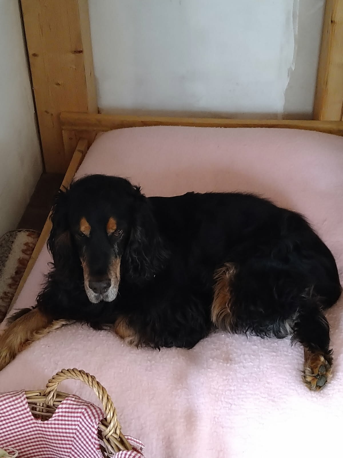 25. Axel s'est fait mal à un coussinet, est ce hier ou ce matin pendant la balade ou dans la pelouse, mystère. Je vais faire une photo demain matin et voir le véto, qui est ouvert que le matin pour voir ce que je peux mettre dessus, je lui ai nettoyé, faire un pansement, c'est pas possible, il va tout bouffer et mettre une collerette n'est pas vraiment envisageable, puisqu'il a de longues pattes. Il n'est pas difficile à soigner, je le maintient , lève sa patte et Vincent nettoie, un travail d'équipe.