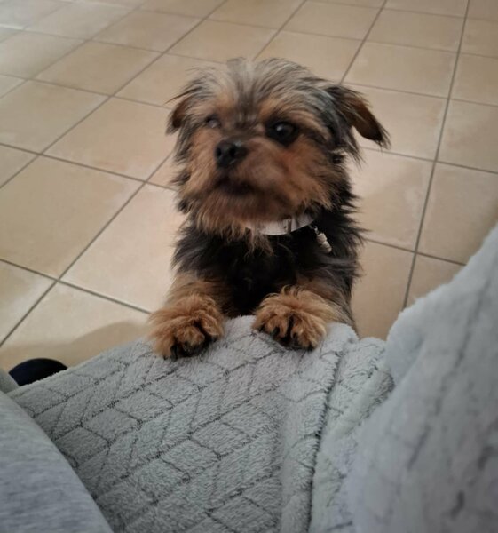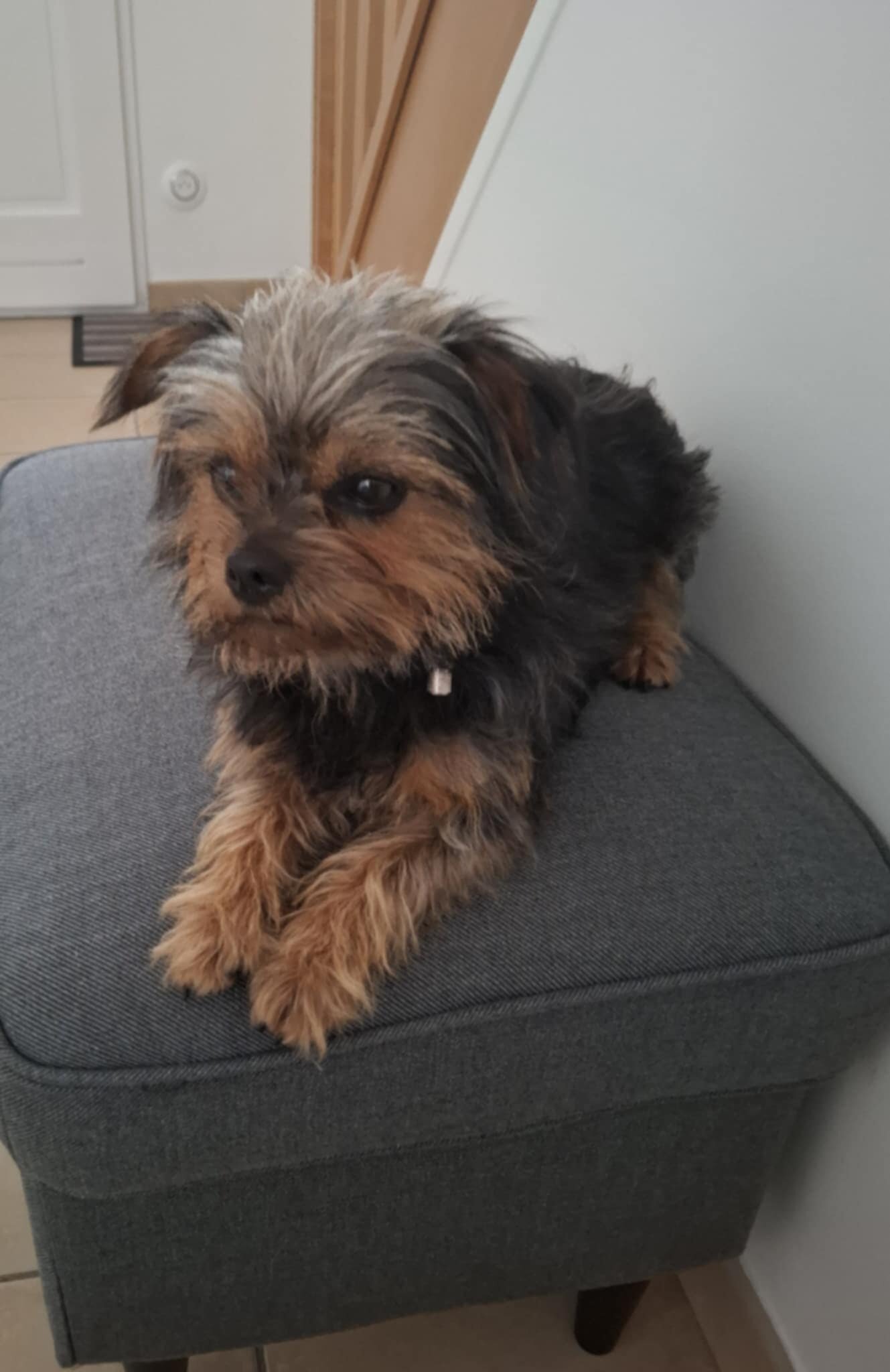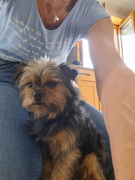Pietro (prénom d'origine Grecque qui signifie petit caillou) est un jeune croisé yorkshire d'environ 3/4 ans ayant toujours vécu dans un camp de gens du voyage sédentarisé. Une dame d'un certain âge possédant 2 petits chiens et vivant elle aussi en caravane près du camp le nourrissait depuis 2 ans sans pour autant le faire rentrer chez elle. Il venait se nourrir puis repartait et elle le voyait se réfugier ou dormir sous des caravanes ou dans des cartons de fortune sans arriver à savoir à qui il appartenait ou avait appartenu. Cette même dame a décidé de reprendre la route avec sa caravane et s'inquiète du devenir de Pietro une fois qu'elle ne sera plus là pour le nourrir. Elle a donc fait appel autour d'elle pour lui trouver un foyer en vain et c'est un couple de jeunes retraités possédant déjà 4 chiens qui l'ont pris sous leurs ailes le temps de trouver une association qui veuille bien le prendre en charge. Leurs appels sont restés vains car toutes les assos sont pleines et c'est Canin sans Famille qui les a envoyé vers nous. Pietro a donc rejoint cani-seniors dimanche dernier et c'est un amour de petit Gavroche canin. Ayant toujours vécu en extérieur il n'est bien évidemment pas propre, pas castré, pas identifié ni vacciné (ce sera fait dès lundi prochain le temps qu'il se pose). La propreté sera donc à lui apprendre avec patience. Il est ok congénères et chats. Il faut éviter les enfants en bas âge. Il serait beaucoup plus heureux en maison qu'en appartement vu ses habitudes de vie. Il a besoin d'être rassuré et il a dormi tout contre moi cette nuit. Il est très en demande d'affection. Pietro est proposé au parrainage et à l'adoption. Il est en famille d'accueil dans le dept 60.
