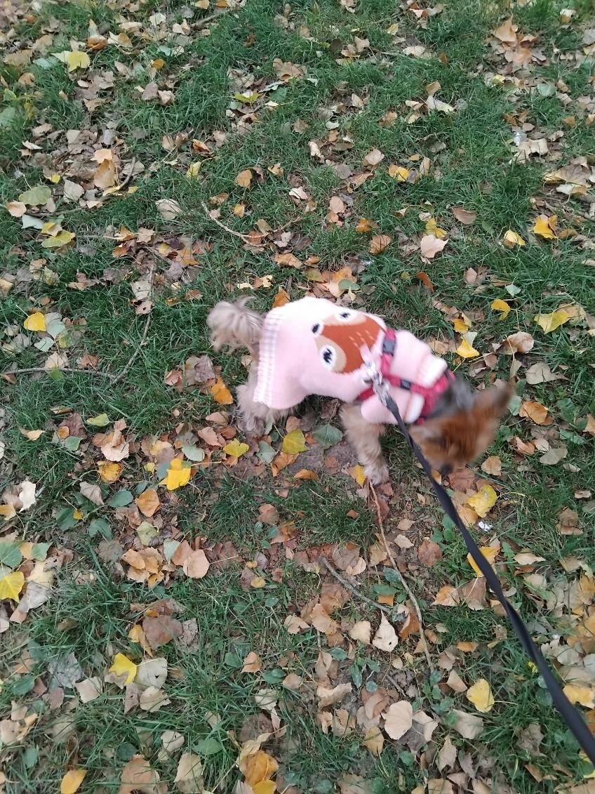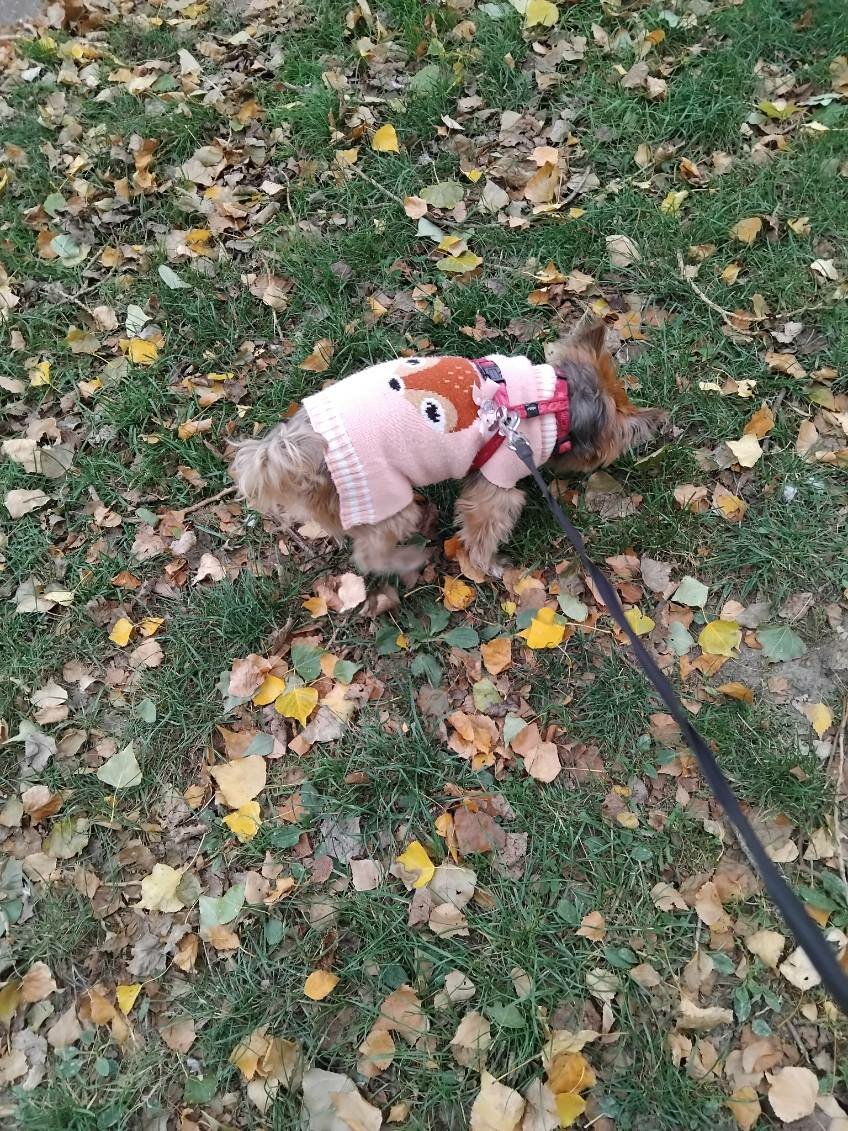 T'es toute fière de te promener avec ce joli manteau petite Framboise ! Tu as l'air bien intéressée aussi par les bonnes odeurs ! Bonne balade la puce -