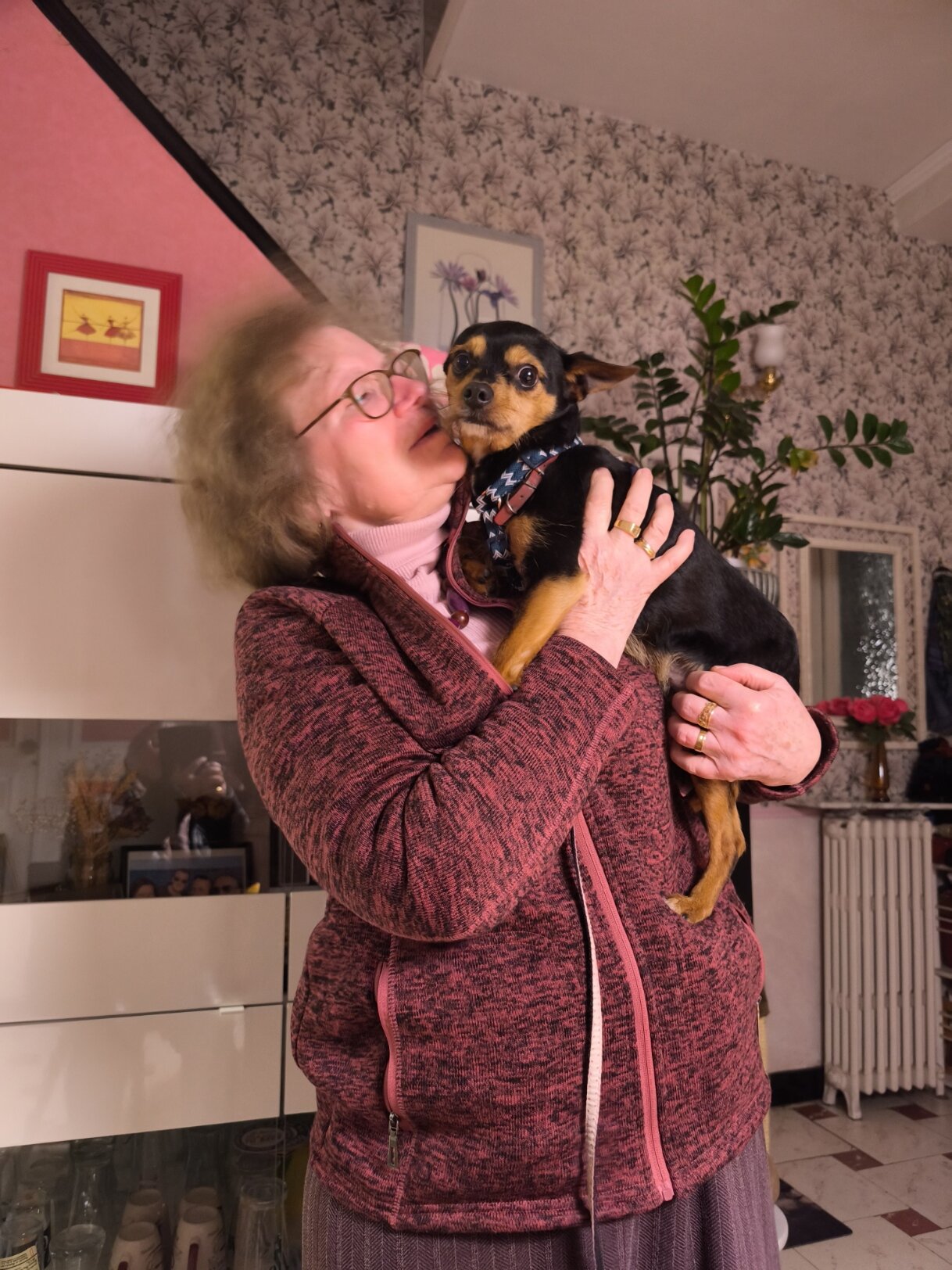 Bonjour à tous C’est Tessie, je viens vous donner des nouvelles. Nous sommes rentrés en région parisienne pour passer l’hiver, nous allons de temps en temps passer quelques jours en Normandie. Donc il y a 2 semaines,nous étions arrivés en Normandie en fin d’après midi, quand en fin de soirée j’ai fait un mini AVC ( transitoire) , cela a duré quelques minutes et après j’étais tout à fait bien , le lendemain matin maman a pris rendez vous chez notre vétérinaire en région parisienne, nous sommes donc rentrés en urgence. Nous avons un vétérinaire en Normandie, mais maman a préféré consulter notre vétérinaire habituel, elle était très choquée que ce soit moi qui ai fait un AVC, je suis la plus jeune, j’ai 8 ans et je suis toujours en super forme, elle s’attend plutôt à quelque chose comme cela pour Chanel qui va sur 16 ans, d’ailleurs maintenant je prends du Candilat comme elle. En parlant de Chanel, elle a fait un truc bizarre, elle a une couche pour la nuit, et un matin, surprise, le pipi était orange donc véto, prise de sang, traitement pour un mois, le contrôle fait cette semaine montre une amélioration, elle n’a plus que des gélules pour le foie et un nouveau contrôle dans un mois. Poppy va bien , elle a juste eu une période un peu difficile, rien de grave mais elle a cumulé les problèmes : -inflammation des oreilles, donc un tube de pommade dans chaque oreille à une semaine d’intervallle puis un spray chaque jour. -les yeux très sales, donc nettoyage et Optimmune - après un bain, elle commençait à sentir mauvais au bout de 3 jours, de plus la peau de son ventre était noire et poisseuse, donc traitement antibiotique plus en alternance bain, mousse et pommade. Maman trouvait que son arrière train était un peu affaissé et comme en plus elle joignait les pattes arrières elle avait une allure un peu bancale. Elle a passé une radio, les disques du bas de son dos sont calcifiés, elle a eu plusieurs piqûres d’Ara Bêta, elle s’est ‘’redressée ‘’ maintenant elle sautille et court. Et pour finir Heden, elle a pas trouvé de truc bizarre à faire elle a ses piqûres contre l’allergie, des petites cures d’Apoquel si besoin et de l’Optimmune, sa vue a beaucoup baissé , elle ne voit plus trop les obstacles pendant les ballades. Maman nous a dit : bon, soyez gentilles, fini les problèmes, maintenant on prépare Noël Joyeux Noēl à tous Poppy se sèche après le bain Je me repose dans mon fauteuil Poppy et Chanel -