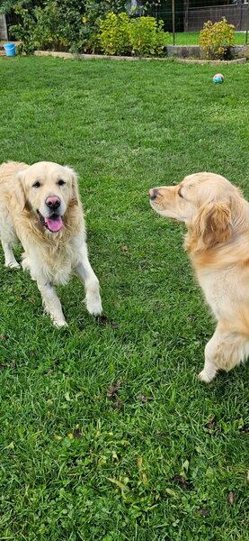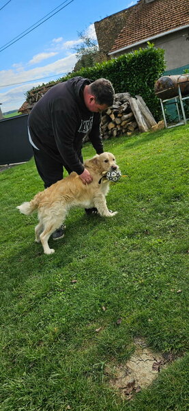 Nous avons reçu une demande de prise en charge d'un mâle golden retriever âgé de 2 ans et demi dont les propriétaires changent de pays suite à une promotion professionnel du monsieur et qui ne souhaitent pas emmener leur chien avec eux car ils l'avaient acheter chiot pour les enfants (ados) du monsieur qui vivent en garde partagée et bien sûr les enfants ce sont très vite lassés du chiot devenu jeune adulte au bout de quelques mois. La nouvelle femme du monsieur étant enceinte, elle avait peur pour le bébé et Rooki a très vite vécu entre le garage et leur jardin sans plus avoir le droit de rentrer dans la maison. Le monsieur n'ayant pas de temps à lui consacrer il n'était pas non plus sorti en balade. Bref Rooki nous a rejoint aujourd'hui et c'est non seulement un très beau chien mais d'une gentillesse infinie. Il est ok congénères , pas dominant du tout, le chien parfait, avide d'inter action et de câlins. Il sera vu semaine prochaine par nos véto pour être castré et remis à jour de ses vaccins. Rooki est proposé au parrainage et à l'adoption. Il est en accueil dans l'Oise 90ead587-c37b-40cf-aabd-15d2b542ca05.mp423 points