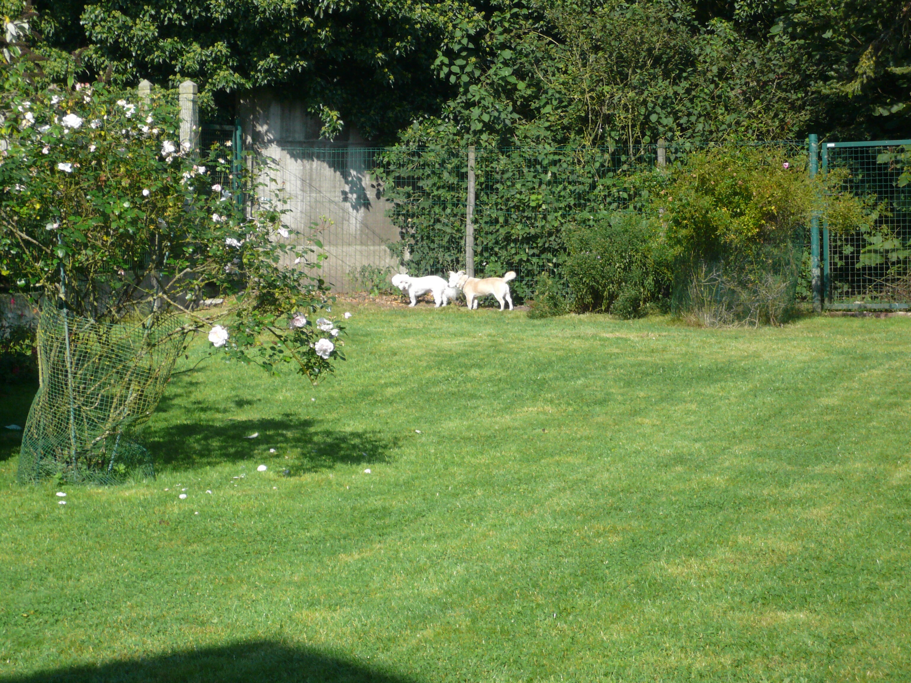 Sur le forum nous aimons tous les photos en voici quelques unes récentes de Mirza. Lorsqu'elle va dans le jardin, elle adore passer sous le weigelia : Depuis quelques jours, elle se rapproche d'Elvis. La voici qui va à sa rencontre et qui le suit (un vrai film !) : Elle aime beaucoup se coucher au soleil et surveiller ce qui se passe tout autour : Avant-hier, Elvis voulait dormir dans la même pièce que Mirza. Il avait choisi le plus grand panier et s'était mis en boule dans un tout petit coin. Elle, était dans celui où elle s'installe souvent. Ils ont été sages et ont bien dormi sans changer de place. Hier, il a encore voulu dormir avec elle... mais il y avait un rapprochement, Elvis avait pris un petit panier et Mirza est venue s'installer dans le grand panier à côté de lui (j'ai séparé un peu les deux pour qu'Elvis ne se retrouve pas dans celui de Mirza s'il bouge la nuit... on y va doucement quand même !) Et deux photos de ce matin : elle surveille Elle a entendu un bruit, elle aboie... une très bonne gardienne.1 point