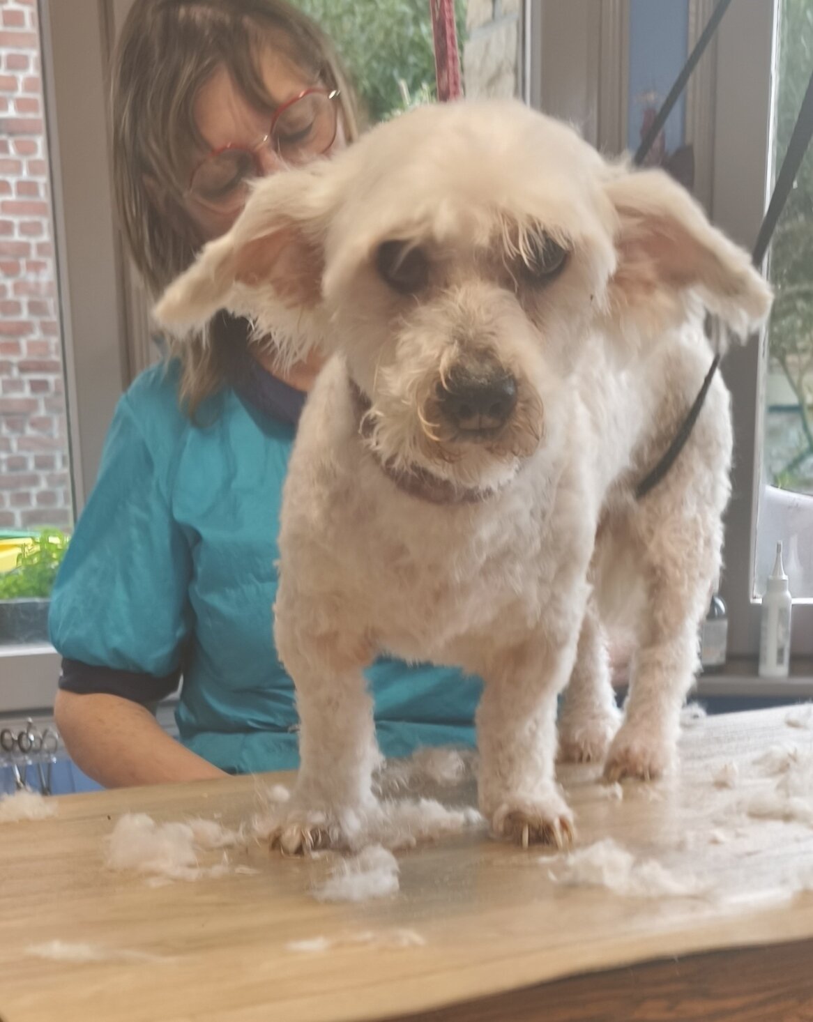 Donc, on a été voir notre toiletteuse, Edith (la mum de Phalco) et elle s'est occupée de nous tout l'après-midi. Nous voulà tous beaux, n'est-ce pas ?