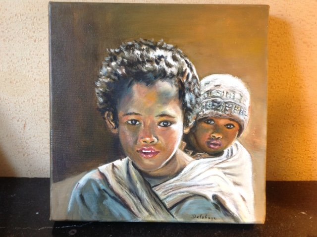 Et pour changer, quelques peintures d'enfants faites à l'huile, enfants du monde dont j'ai pris les photos sur internet. Désolée, je n'ai pas réussi à réduire le format des photos. Quelqu'un de plus doué en informatique pourrait-il le faire ?