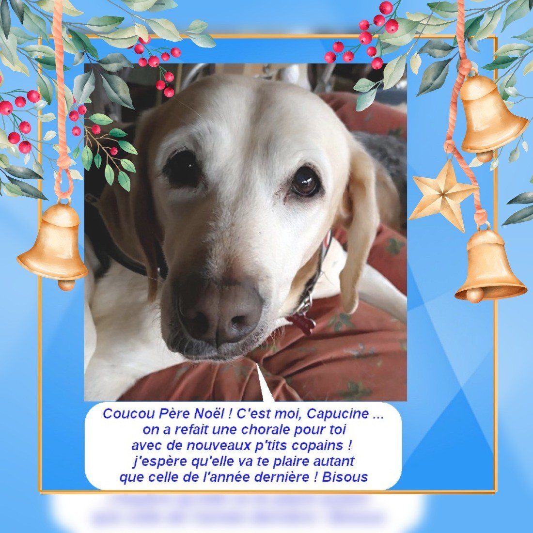 Thalie 70 758 Posté(e) le 18 décembre 2019 Auteur Partager Posté(e) le 18 décembre 2019 Une nouvelle chorale pour 2019 .... les participants : Capucine, Plume, Léon, Whisky, Milord, Caramel, Tonton, Futé, Hapache, Juliette, Sapphö, Scoubi et Zorro 1 2 Lien vers le commentaire https://www.cani-seniors.org/topic/31112-une-chorale-pour-le-p%C3%A8re-no%C3%ABl/page/2/#findComment-804536 Partager sur d’autres sites More sharing options...