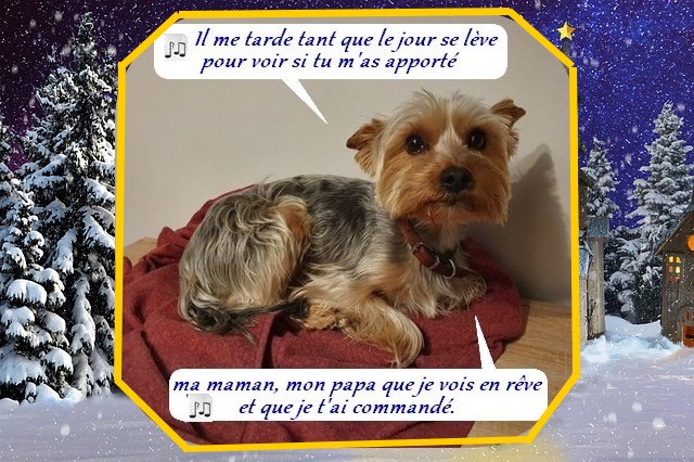 Queenycj 47 326 Posté(e) le 18 décembre 2019 Partager Posté(e) le 18 décembre 2019 Bravo Evelyne, très émouvant, une belle réussite comme l'année dernière et le tout , magistralement orchestré par notre chef Capucine c'est vrai qu'on a l'impression de les entendre chanter .. si quelques uns pouvaient trouver encore leur famille avant Noël, ce serait merveilleux pour eux et pour leurs FA qui les remettent sur pied et les bichonnent. Mais à mon avis le Père Noël a déjà entendu la chorale et il y travaille d'arrache-pied ! merci à la compositrice et à tous nos petits chanteurs au coeur énorme . Trophée d'or de la bulle 2019 décerné à Evelyne-Thalie qui a ensoleillé toute notre année par son immense travail Lien vers le commentaire https://www.cani-seniors.org/topic/31112-une-chorale-pour-le-p%C3%A8re-no%C3%ABl/page/3/#findComment-804572 Partager sur d’autres sites More sharing options...