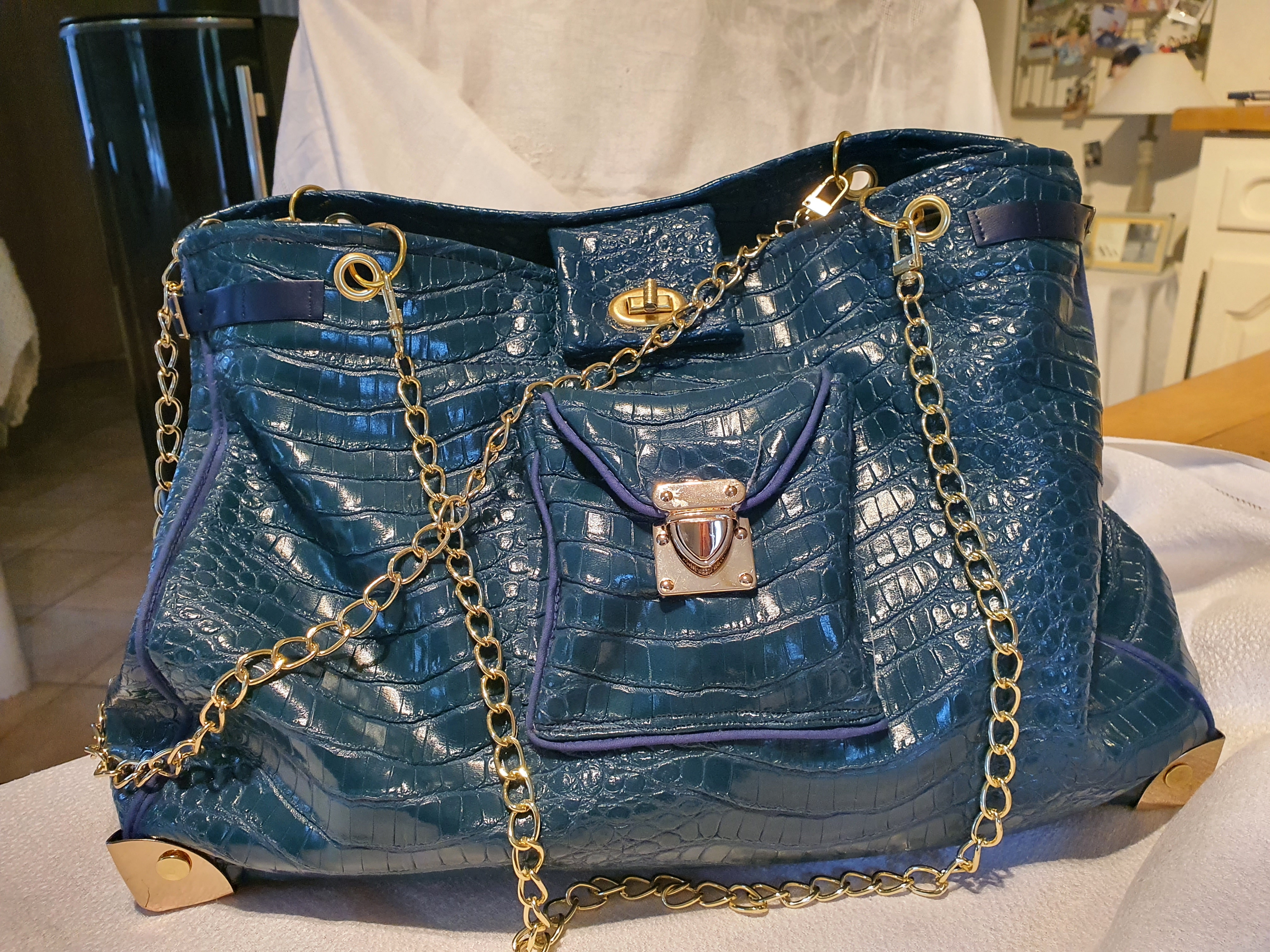 Posté(e) le 24 février 20215 a J'ai ENFIN terminé le sac que j'ai entrepris de confectionner pour une de mes belle-fille ou pour Lina, je ne sais pas encore. Elles aiment toutes les deux les dorures... J'ai galéré car je créais le modèle au fur et à mesure et comme je suis loin d'être une pro... Il est fabriqué en cuir synthétique, doublure tissu et j'ai utilisé pas mal de chose recyclées (que je récupère sur de vieux sacs que je découds et dont je conserve tout ce qui peut l'être, comme les coins dorés, les fermoirs, le cuir etc...) J'ai mis un temps à faire celui-là!!! je ne suis pas très productive mais ça m'amuse!