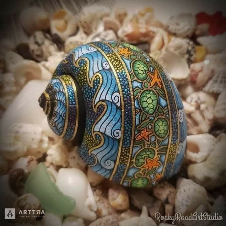 Posté(e) le 21 septembre 20241 a Lisa Orlans décore des coquillages d'escargots avec des motifs absolument impressionnants. Les coquillages, abandonnés par les oiseaux, sont ramassés et désinfectés avant la peinture. C'est une forme d'art éthique et sans gaspillage de ressources.