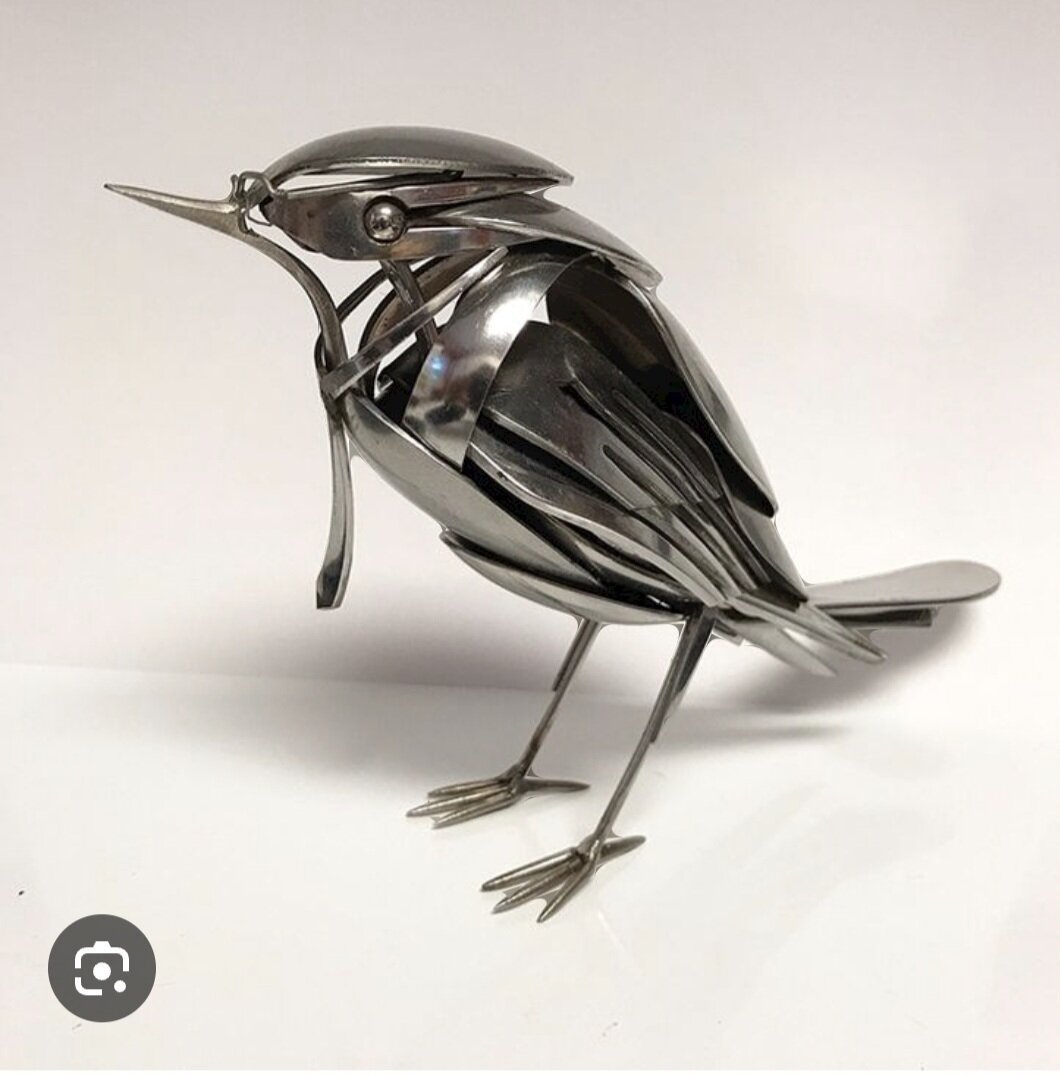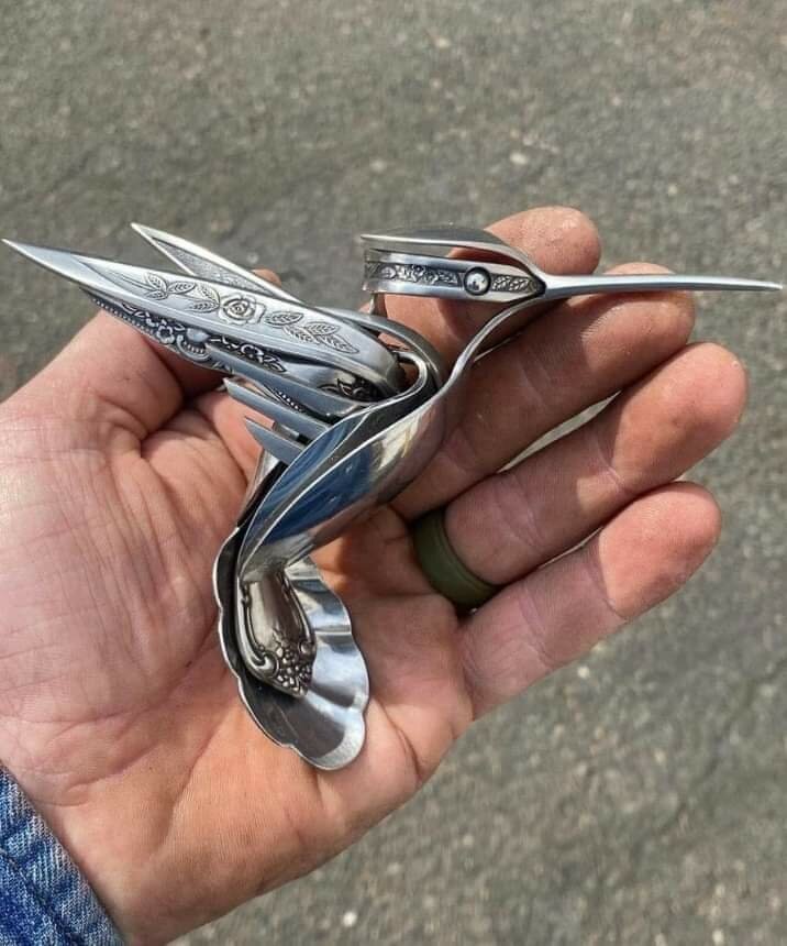 Posté(e) le 26 septembre 20241 a Colibri fabriqué à partir de couverts recyclés. Artiste : Matt Wilson.