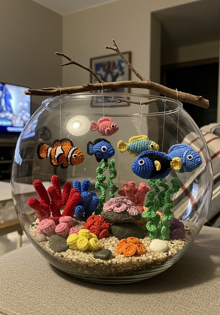 Posté(e) le 27 mai 2025le 27 mai Bravo Orchidée. Que c'est mignon ce bocal avec ces petits poissons. Ca doit être minutieux comme travail de crochet