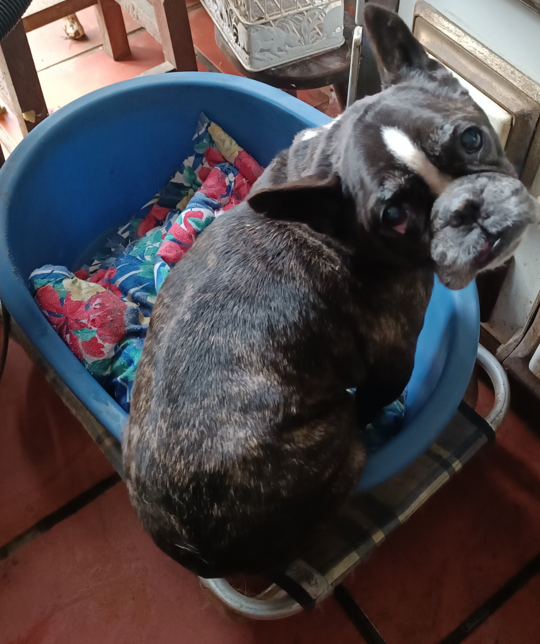 Je constate que tu dis vrai mon Simon ce panier n ' est absolument pas à ta taille , il serait bien pour un lilipuchien et encore ! Bon pas grave Tatie va bientôt avoir fini de remettre tout en place pour ton plus grand bonheur . Au fait comme dis Naïa si tu pouvais perdre ton habitude de pisse partout c ' est un grand cadeau que tu ferais à Mary en compensation d' une magnifique véranda . !