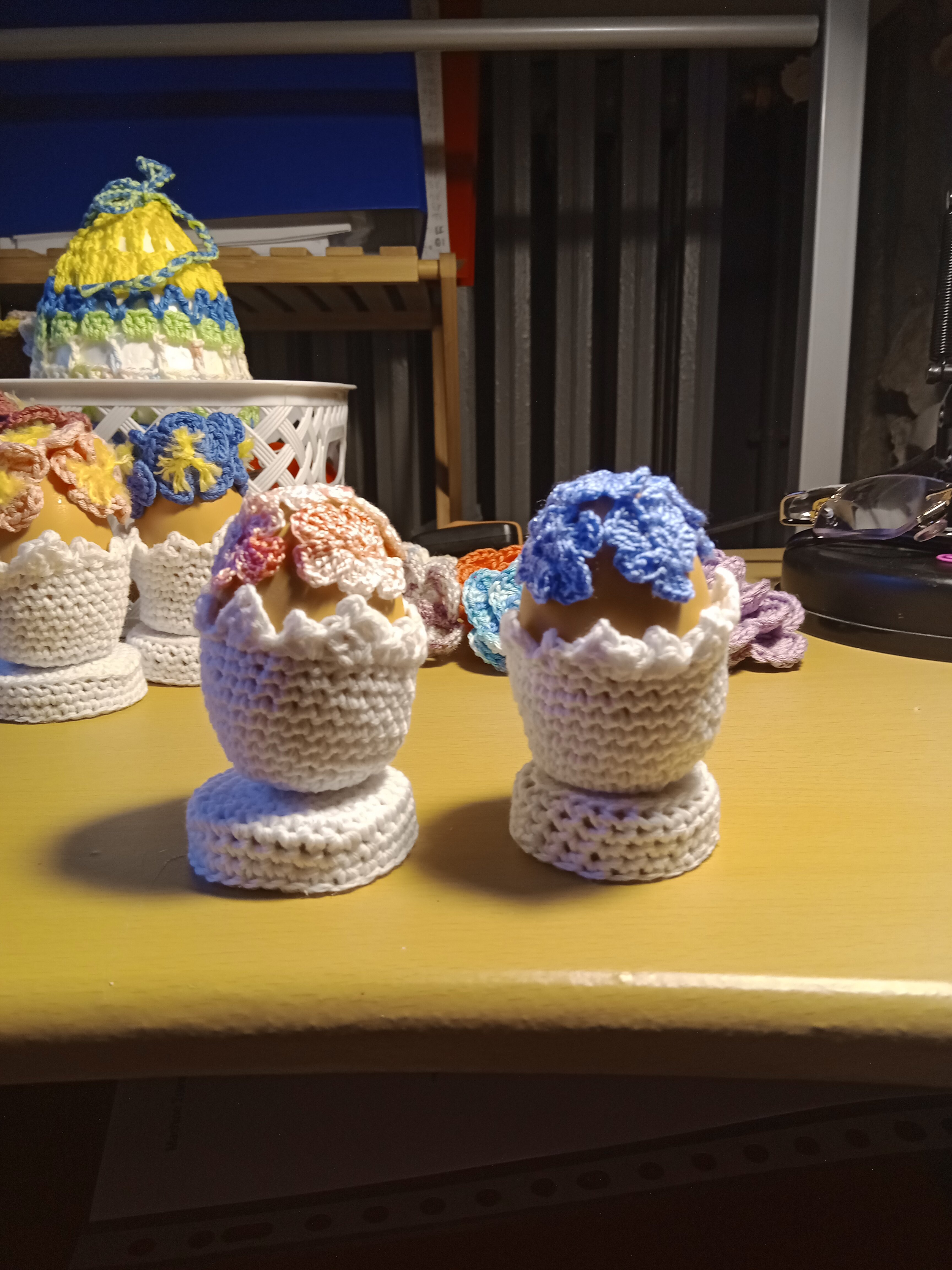Posté(e) le 23 mars 20251 a Une jolie panoplie de coquetiers d'oeufs et de petits capuchons ,,tous finement crochetés ,,une fois de plus de jolies réalisations ,,,un gros travail ,, merci Soisic ,,,