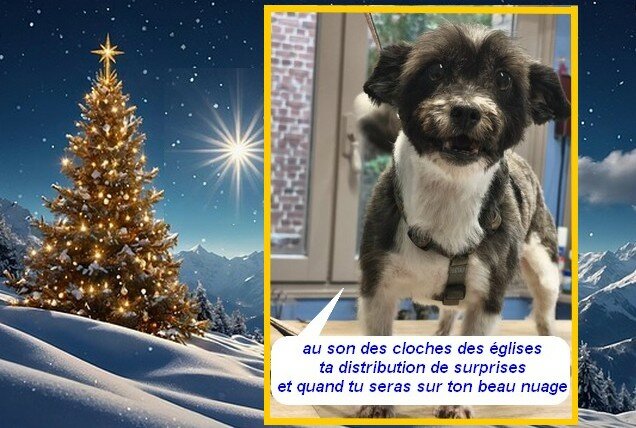 Anna76 26 549 Posté(e) il y a 18 heures Partager Posté(e) il y a 18 heures Merci Thalie. Mille mercis. C'est émouvant comme toujours. Ce pauvre Goubiath a été un peu martyrisé par les copains, mais c'est pour une bonne cause. Joyeux Noël à tous nos petits chanteurs et tous les petits Cani Senioriens. Espérons que, pour ceux n'ayant pas trouvé leur famille, le Père Noël sèmera plein de jolis rêves, comme autant de graines qui ne demanderont qu'à germer, dans l'esprit des futurs adoptants. Belles fêtes de fin d'année. 1 2 Lien vers le commentaire https://www.cani-seniors.org/topic/41317-la-chorale-de-no%C3%ABl-2025/#findComment-1056101 Partager sur d’autres sites More sharing options...